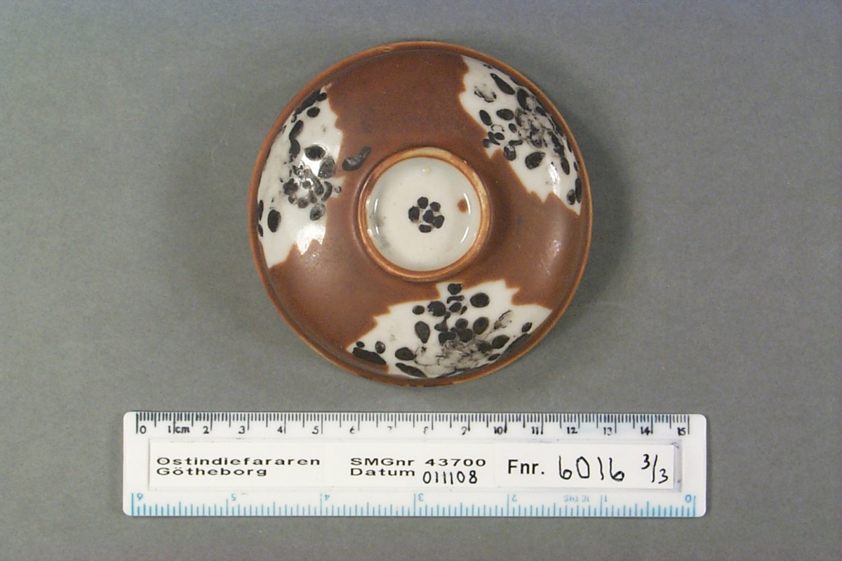 Föremålet är från vraket av ostindiefararen Götheborg, som gjorde tre resor till Kina 1739-45. Vid hemkomsten från den sista resan 12 september 1745 förliste fartyget vid grundet Hunnebådan strax utanför Nya Elfsborgs fästning. Vid flera tillfällen har material tagits upp från vraket. Föremålet kommer från de marinarkeologiska utgrävningarna på platsen 1986-1992.