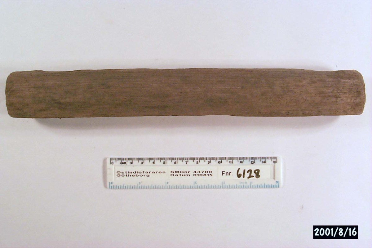Föremålet är från vraket av ostindiefararen Götheborg, som gjorde tre resor till Kina 1739-45. Vid hemkomsten från den sista resan 12 september 1745 förliste fartyget vid grundet Hunnebådan strax utanför Nya Elfsborgs fästning. Vid flera tillfällen har material tagits upp från vraket. Föremålet kommer från de marinarkeologiska utgrävningarna på platsen 1986-1992.