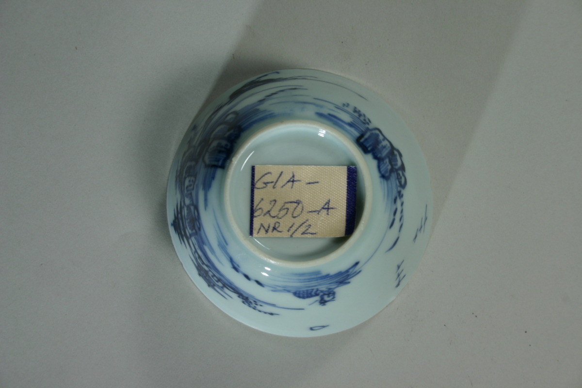 Kategori A; underglasyrblå dekor. Mycket tunt och fint gods.