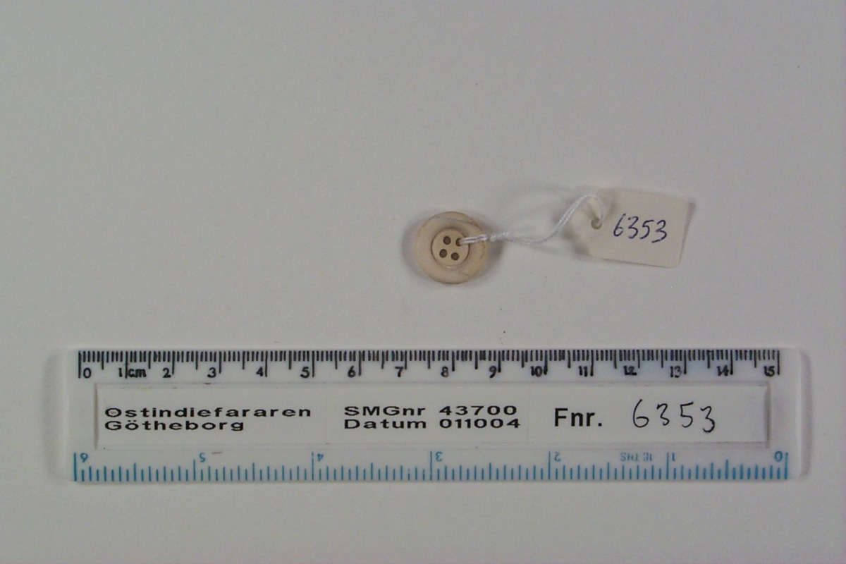 Föremålet är från vraket av ostindiefararen Götheborg, som gjorde tre resor till Kina 1739-45. Vid hemkomsten från den sista resan 12 september 1745 förliste fartyget vid grundet Hunnebådan strax utanför Nya Elfsborgs fästning. Vid flera tillfällen har material tagits upp från vraket. Föremålet kommer från de marinarkeologiska utgrävningarna på platsen 1986-1992.