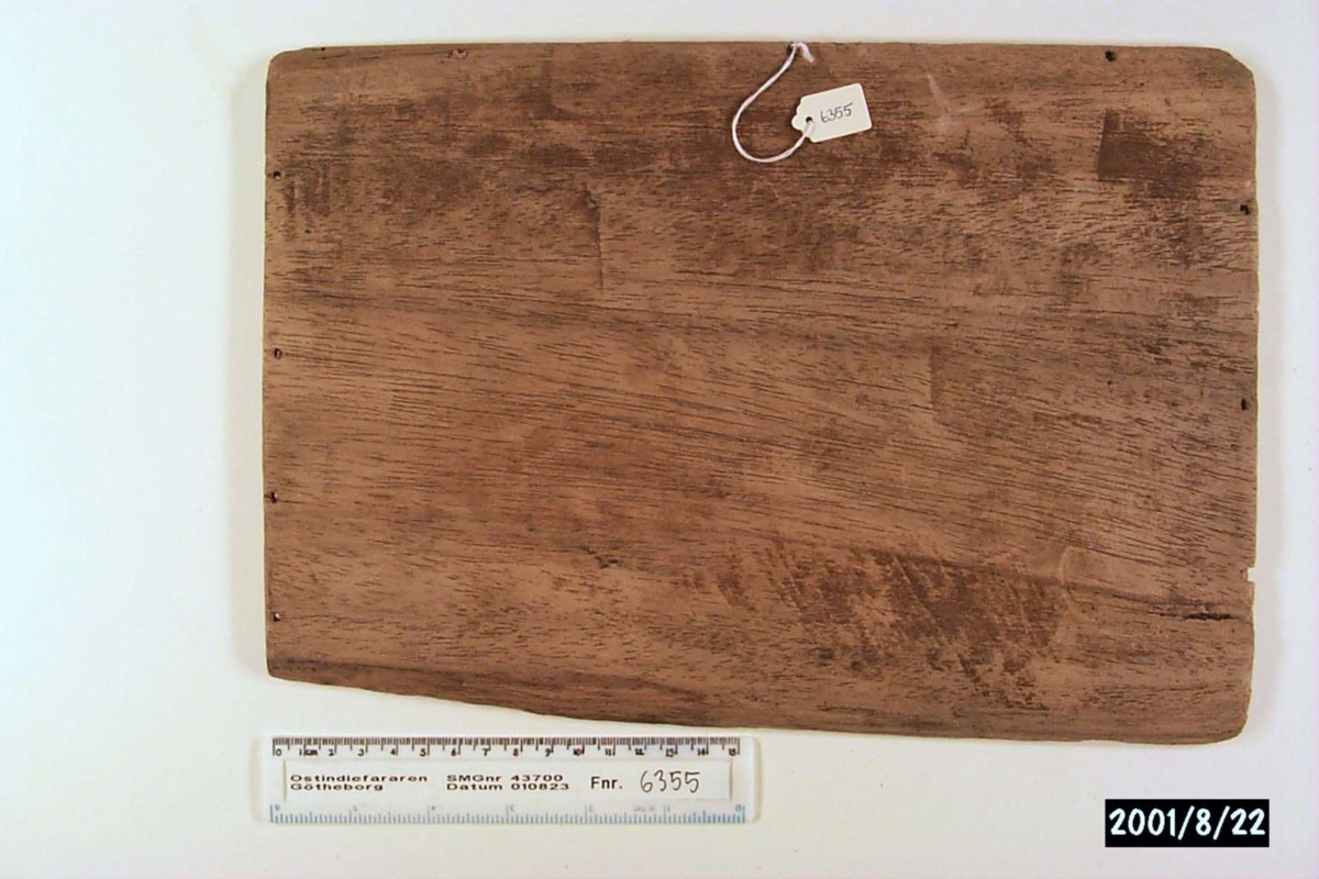 Lock eller botten till kista. Spikhål utmed tre av kanterna, fjärde kanten avbruten.