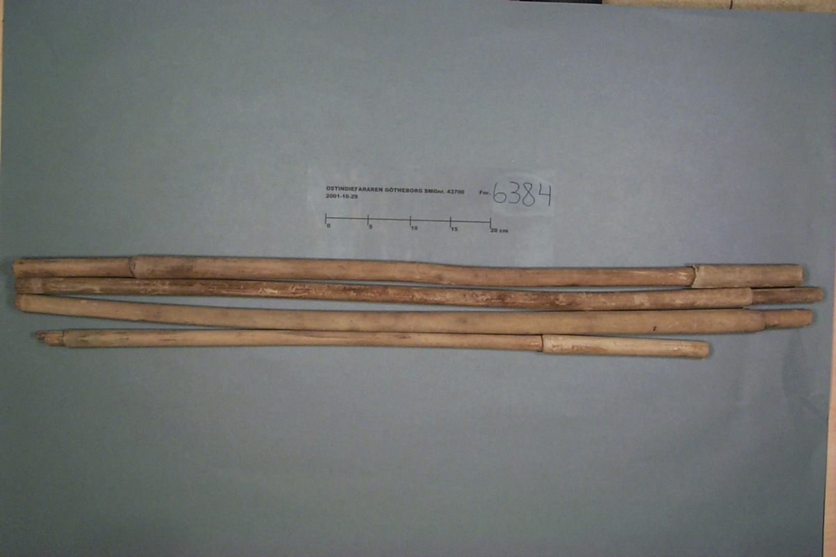 Föremålet är från vraket av ostindiefararen Götheborg, som gjorde tre resor till Kina 1739-45. Vid hemkomsten från den sista resan 12 september 1745 förliste fartyget vid grundet Hunnebådan strax utanför Nya Elfsborgs fästning. Vid flera tillfällen har material tagits upp från vraket. Föremålet kommer från de marinarkeologiska utgrävningarna på platsen 1986-1992.