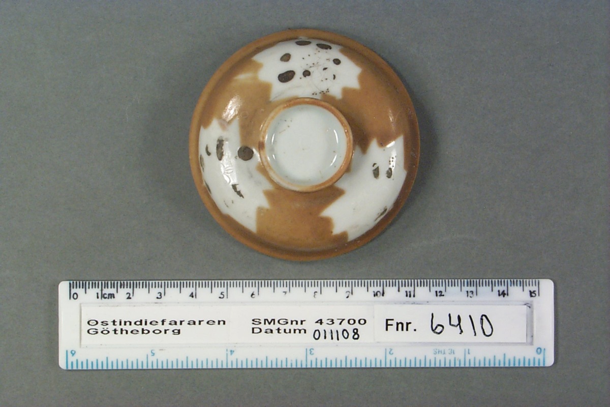 Föremålet är från vraket av ostindiefararen Götheborg, som gjorde tre resor till Kina 1739-45. Vid hemkomsten från den sista resan 12 september 1745 förliste fartyget vid grundet Hunnebådan strax utanför Nya Elfsborgs fästning. Vid flera tillfällen har material tagits upp från vraket. Föremålet kommer från de marinarkeologiska utgrävningarna på platsen 1986-1992.