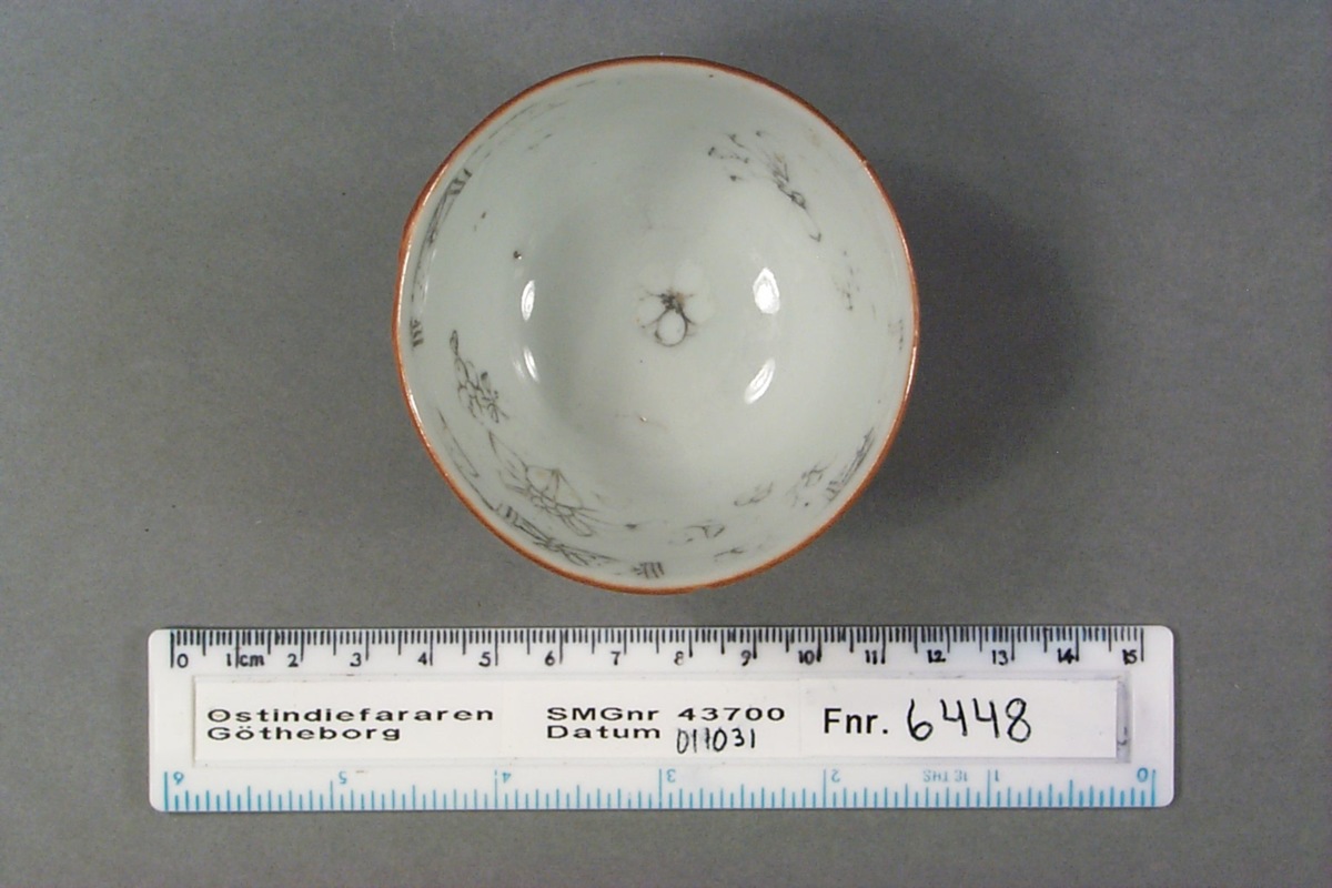 Kategori D; Brun glasyr på utsidan och emaljfärgsdekor på insidan.