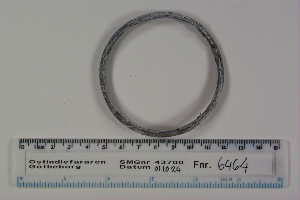 Föremålet är från vraket av ostindiefararen Götheborg, som gjorde tre resor till Kina 1739-45. Vid hemkomsten från den sista resan 12 september 1745 förliste fartyget vid grundet Hunnebådan strax utanför Nya Elfsborgs fästning. Vid flera tillfällen har material tagits upp från vraket. Föremålet kommer från de marinarkeologiska utgrävningarna på platsen 1986-1992.