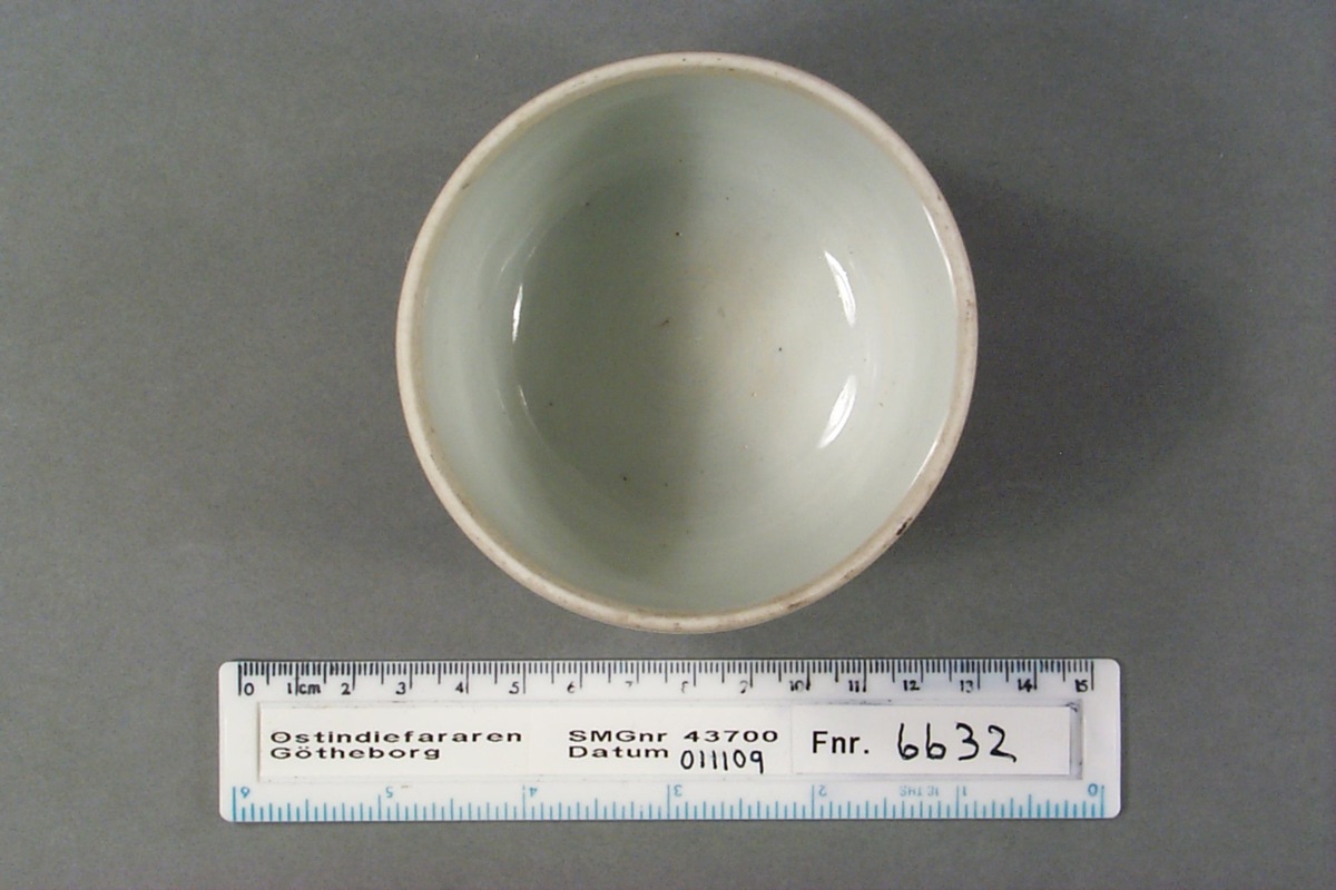 Föremålet är från vraket av ostindiefararen Götheborg, som gjorde tre resor till Kina 1739-45. Vid hemkomsten från den sista resan 12 september 1745 förliste fartyget vid grundet Hunnebådan strax utanför Nya Elfsborgs fästning. Vid flera tillfällen har material tagits upp från vraket. Föremålet kommer från de marinarkeologiska utgrävningarna på platsen 1986-1992.