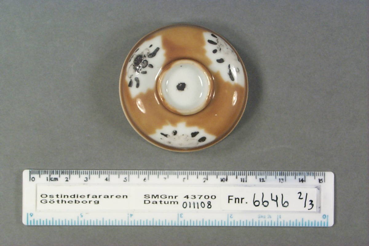 Föremålet är från vraket av ostindiefararen Götheborg, som gjorde tre resor till Kina 1739-45. Vid hemkomsten från den sista resan 12 september 1745 förliste fartyget vid grundet Hunnebådan strax utanför Nya Elfsborgs fästning. Vid flera tillfällen har material tagits upp från vraket. Föremålet kommer från de marinarkeologiska utgrävningarna på platsen 1986-1992.