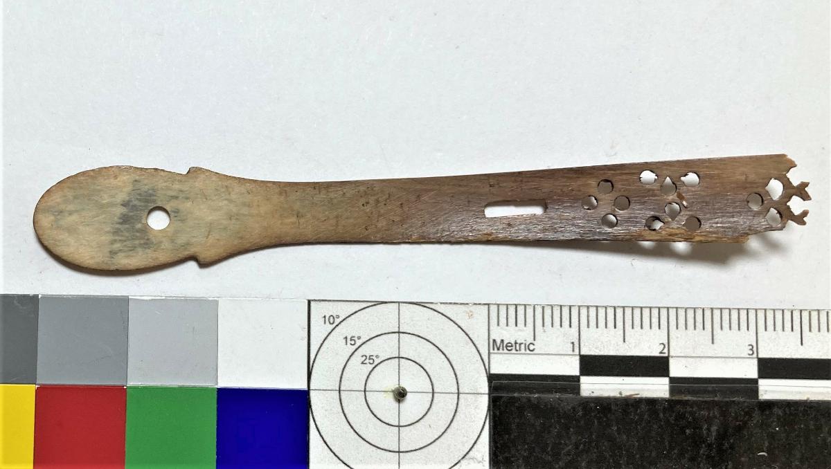 Föremålet är från vraket av ostindiefararen Götheborg, som gjorde tre resor till Kina 1739-45. Vid hemkomsten från den sista resan 12 september 1745 förliste fartyget vid grundet Hunnebådan strax utanför Nya Elfsborgs fästning. Vid flera tillfällen har material tagits upp från vraket. Föremålet kommer från de marinarkeologiska utgrävningarna på platsen 1986-1992.