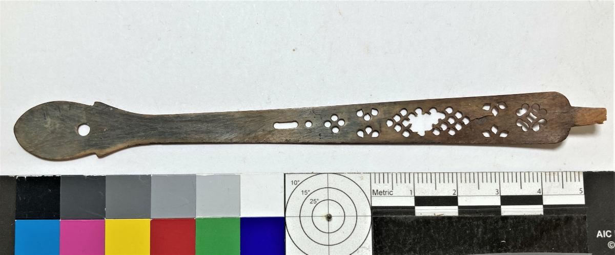 Föremålet är från vraket av ostindiefararen Götheborg, som gjorde tre resor till Kina 1739-45. Vid hemkomsten från den sista resan 12 september 1745 förliste fartyget vid grundet Hunnebådan strax utanför Nya Elfsborgs fästning. Vid flera tillfällen har material tagits upp från vraket. Föremålet kommer från de marinarkeologiska utgrävningarna på platsen 1986-1992.