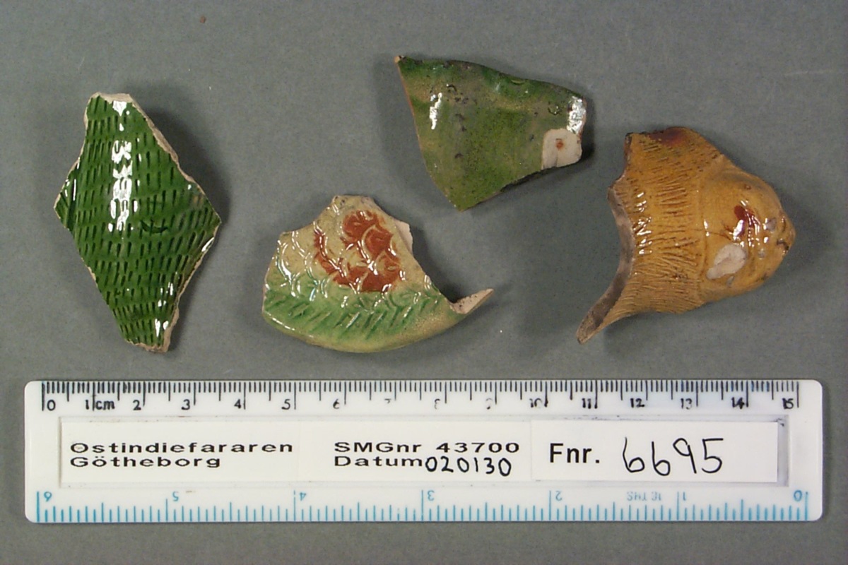 Föremålet är från vraket av ostindiefararen Götheborg, som gjorde tre resor till Kina 1739-45. Vid hemkomsten från den sista resan 12 september 1745 förliste fartyget vid grundet Hunnebådan strax utanför Nya Elfsborgs fästning. Vid flera tillfällen har material tagits upp från vraket. Föremålet kommer från de marinarkeologiska utgrävningarna på platsen 1986-1992.