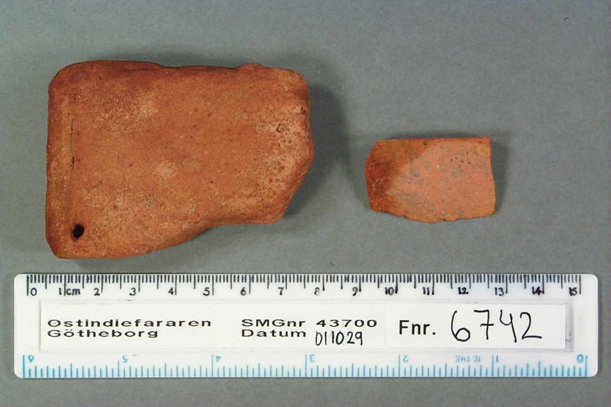 Föremålet är från vraket av ostindiefararen Götheborg, som gjorde tre resor till Kina 1739-45. Vid hemkomsten från den sista resan 12 september 1745 förliste fartyget vid grundet Hunnebådan strax utanför Nya Elfsborgs fästning. Vid flera tillfällen har material tagits upp från vraket. Föremålet kommer från de marinarkeologiska utgrävningarna på platsen 1986-1992.