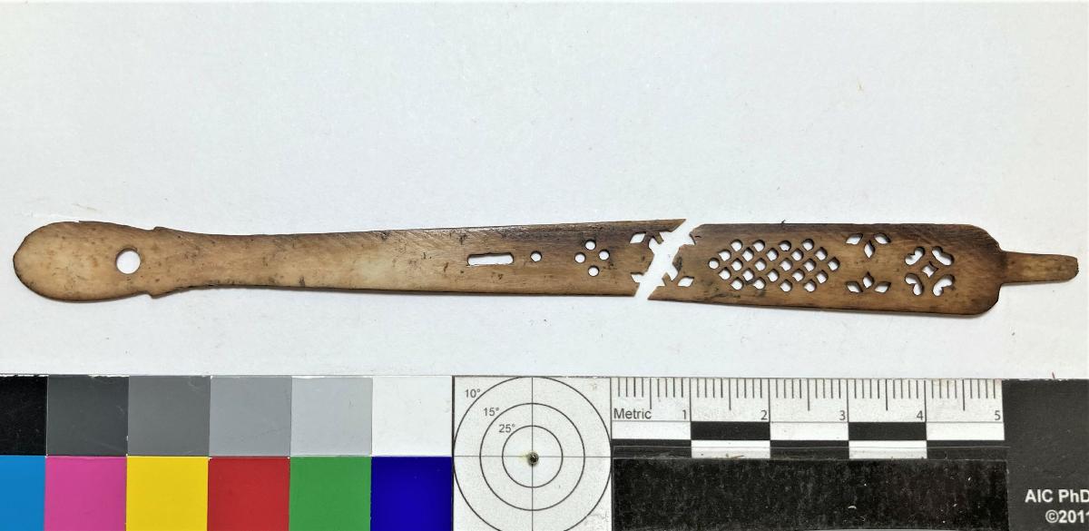 Föremålet är från vraket av ostindiefararen Götheborg, som gjorde tre resor till Kina 1739-45. Vid hemkomsten från den sista resan 12 september 1745 förliste fartyget vid grundet Hunnebådan strax utanför Nya Elfsborgs fästning. Vid flera tillfällen har material tagits upp från vraket. Föremålet kommer från de marinarkeologiska utgrävningarna på platsen 1986-1992.