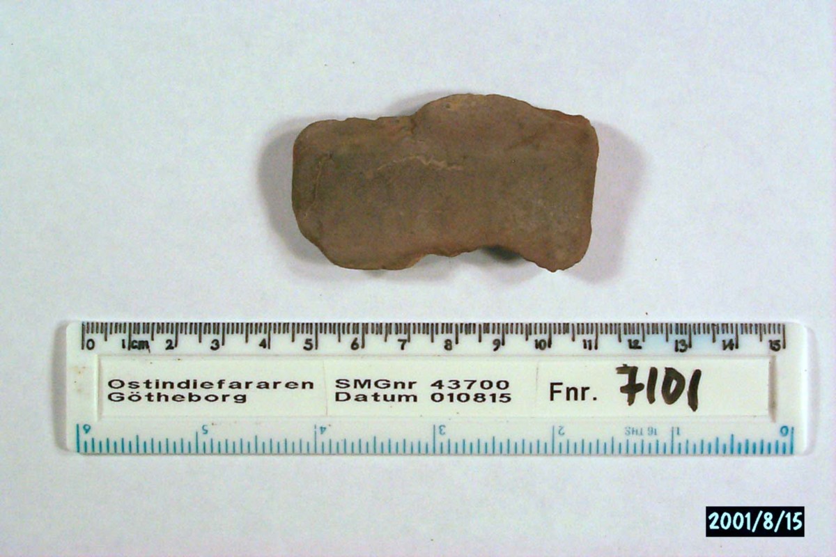 Föremålet är från vraket av ostindiefararen Götheborg, som gjorde tre resor till Kina 1739-45. Vid hemkomsten från den sista resan 12 september 1745 förliste fartyget vid grundet Hunnebådan strax utanför Nya Elfsborgs fästning. Vid flera tillfällen har material tagits upp från vraket. Föremålet kommer från de marinarkeologiska utgrävningarna på platsen 1986-1992.
