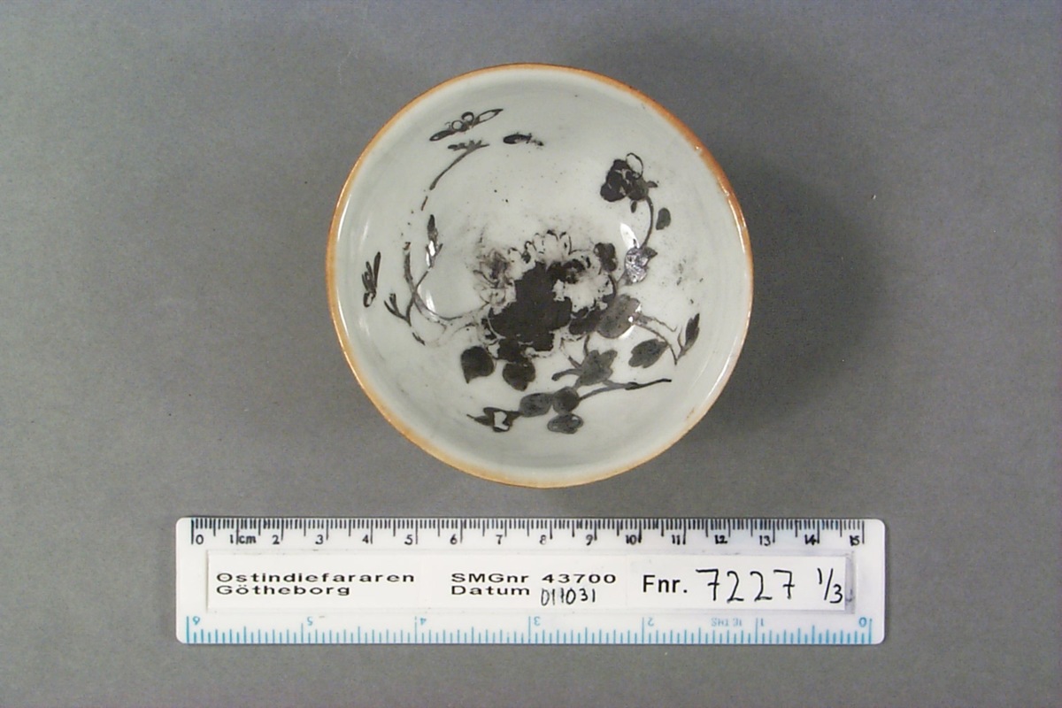 Föremålet är från vraket av ostindiefararen Götheborg, som gjorde tre resor till Kina 1739-45. Vid hemkomsten från den sista resan 12 september 1745 förliste fartyget vid grundet Hunnebådan strax utanför Nya Elfsborgs fästning. Vid flera tillfällen har material tagits upp från vraket. Föremålet kommer från de marinarkeologiska utgrävningarna på platsen 1986-1992.