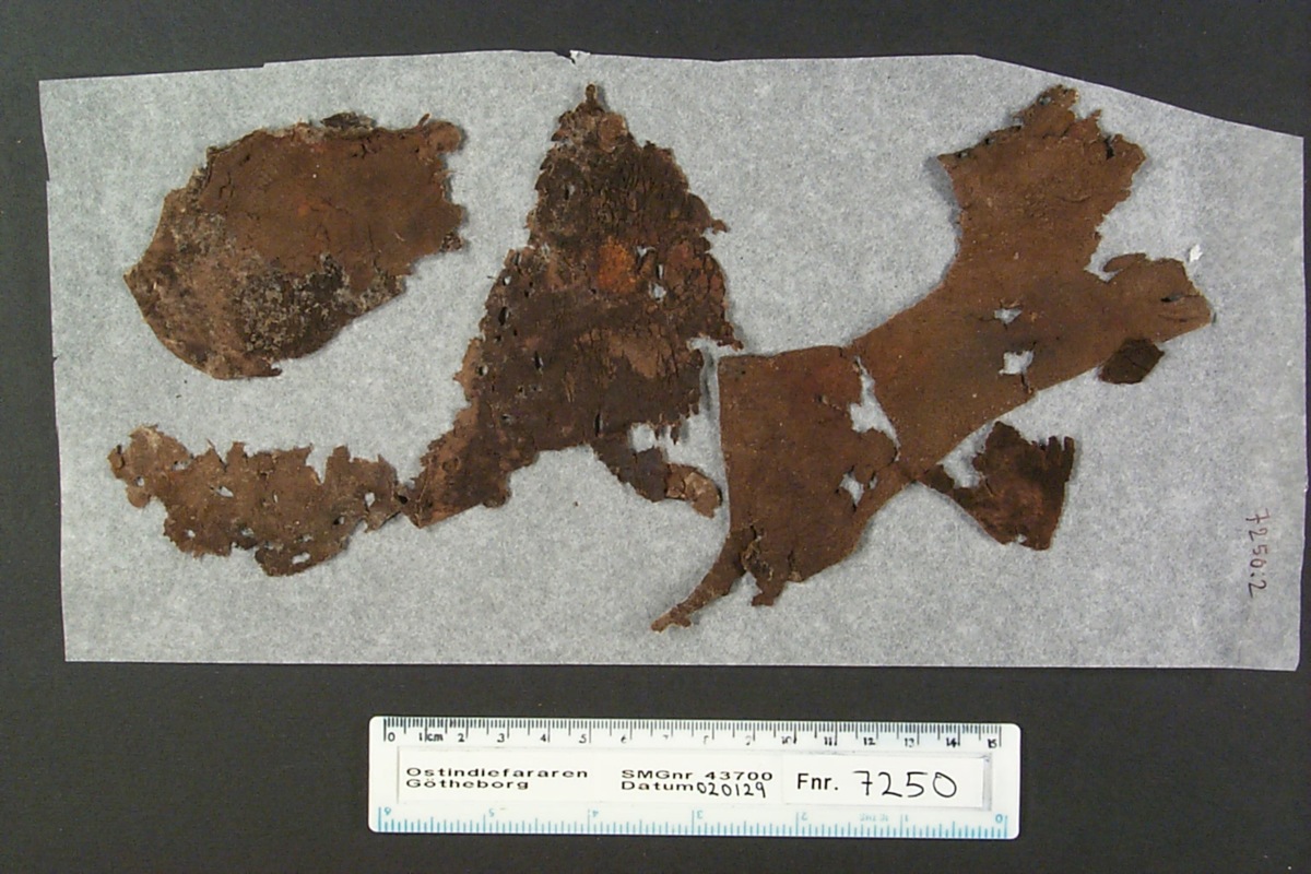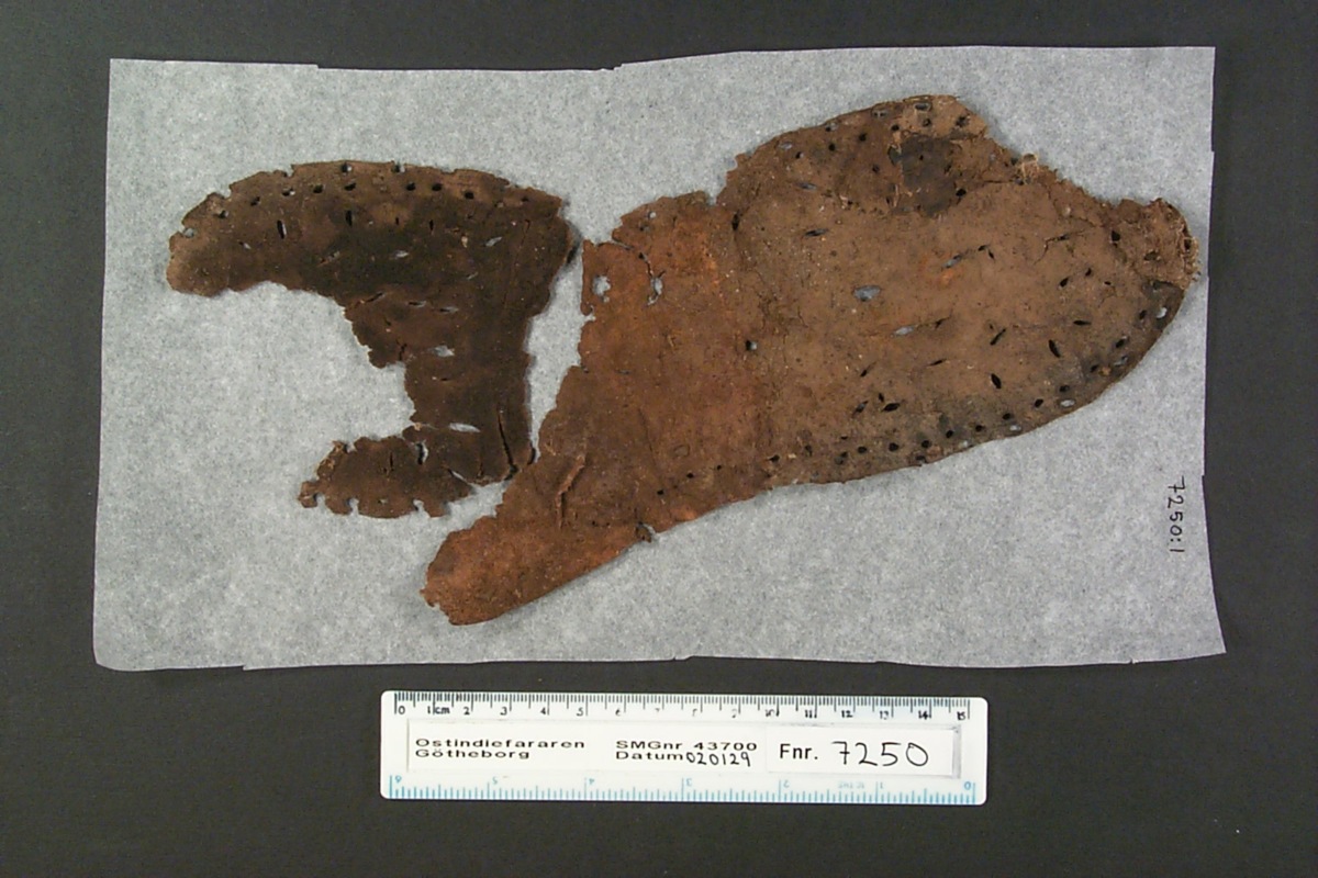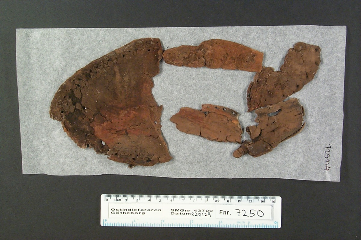 Föremålet är från vraket av ostindiefararen Götheborg, som gjorde tre resor till Kina 1739-45. Vid hemkomsten från den sista resan 12 september 1745 förliste fartyget vid grundet Hunnebådan strax utanför Nya Elfsborgs fästning. Vid flera tillfällen har material tagits upp från vraket. Föremålet kommer från de marinarkeologiska utgrävningarna på platsen 1986-1992.