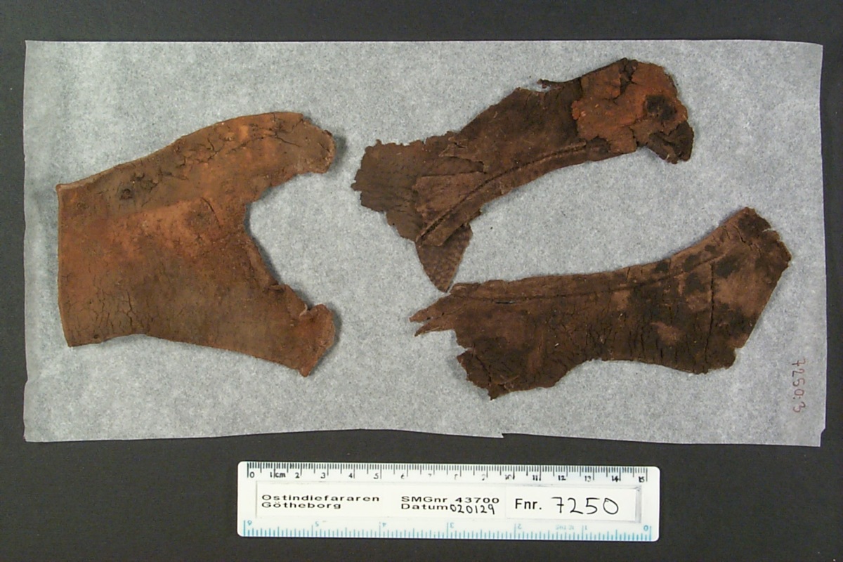 3) Ett antal mer eller mindre fragmentariska delar av fotbeklädnad.