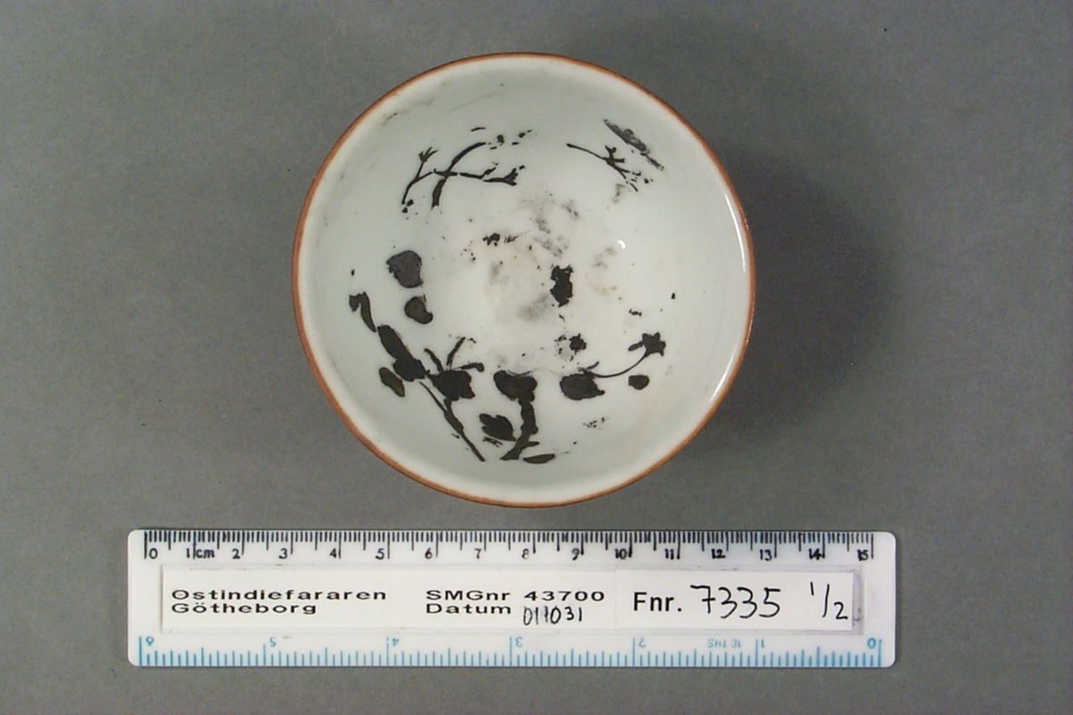 Föremålet är från vraket av ostindiefararen Götheborg, som gjorde tre resor till Kina 1739-45. Vid hemkomsten från den sista resan 12 september 1745 förliste fartyget vid grundet Hunnebådan strax utanför Nya Elfsborgs fästning. Vid flera tillfällen har material tagits upp från vraket. Föremålet kommer från de marinarkeologiska utgrävningarna på platsen 1986-1992.