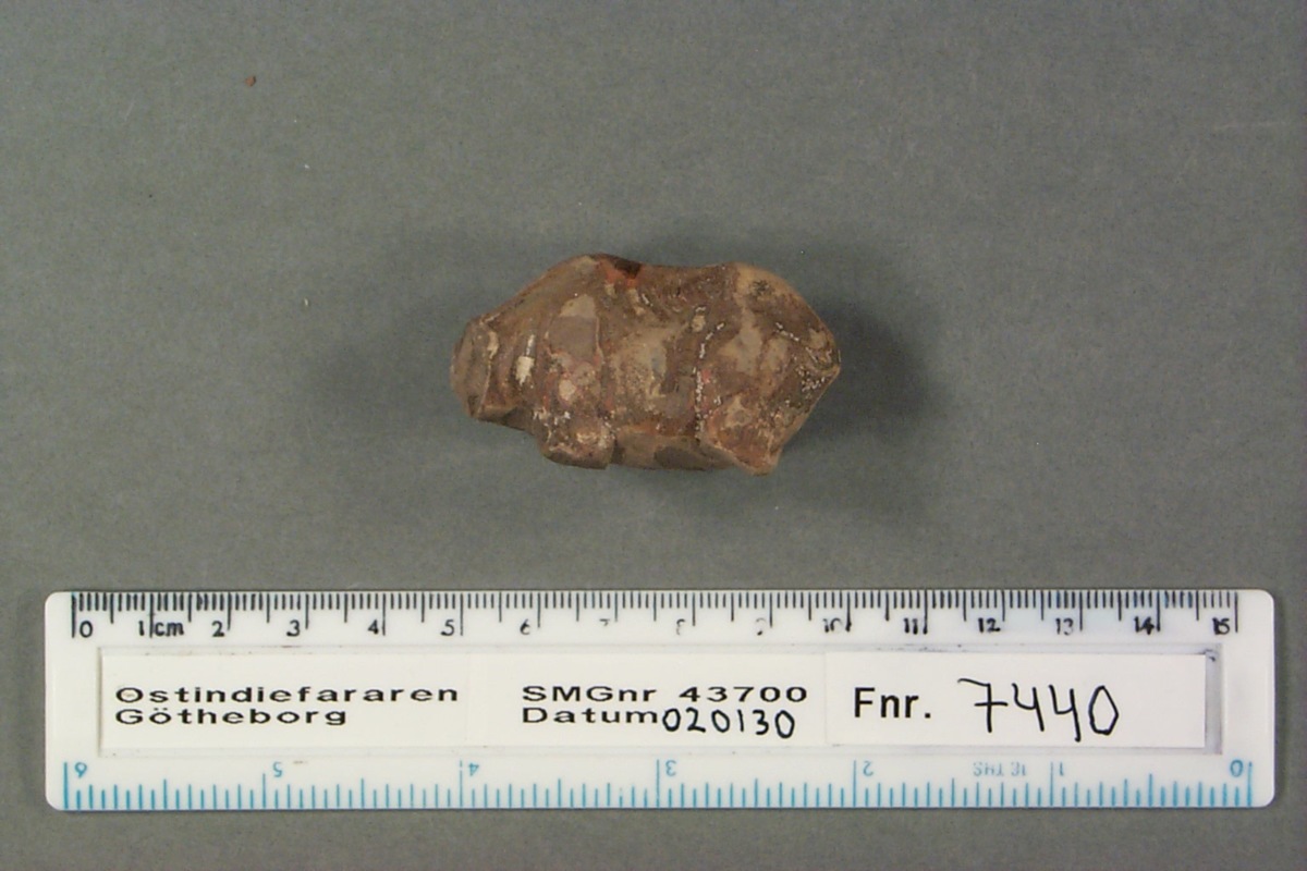 Föremålet är från vraket av ostindiefararen Götheborg, som gjorde tre resor till Kina 1739-45. Vid hemkomsten från den sista resan 12 september 1745 förliste fartyget vid grundet Hunnebådan strax utanför Nya Elfsborgs fästning. Vid flera tillfällen har material tagits upp från vraket. Föremålet kommer från de marinarkeologiska utgrävningarna på platsen 1986-1992.