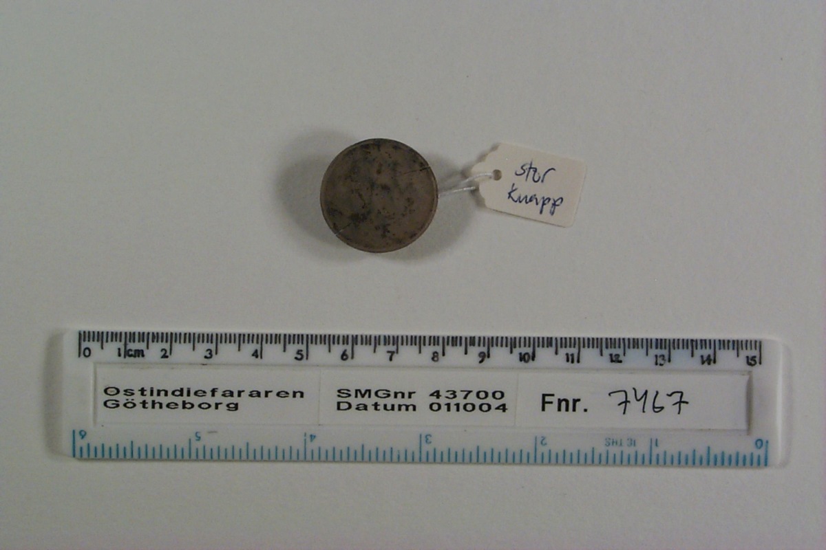 Föremålet är från vraket av ostindiefararen Götheborg, som gjorde tre resor till Kina 1739-45. Vid hemkomsten från den sista resan 12 september 1745 förliste fartyget vid grundet Hunnebådan strax utanför Nya Elfsborgs fästning. Vid flera tillfällen har material tagits upp från vraket. Föremålet kommer från de marinarkeologiska utgrävningarna på platsen 1986-1992.