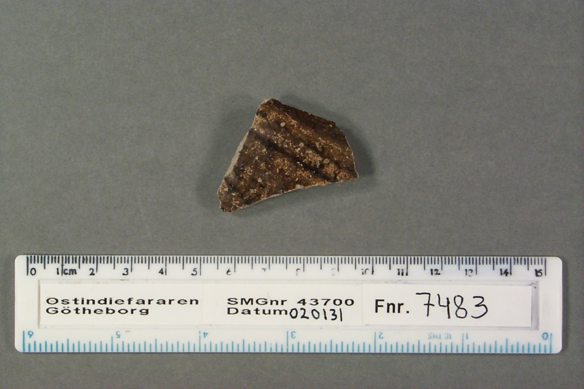 Föremålet är från vraket av ostindiefararen Götheborg, som gjorde tre resor till Kina 1739-45. Vid hemkomsten från den sista resan 12 september 1745 förliste fartyget vid grundet Hunnebådan strax utanför Nya Elfsborgs fästning. Vid flera tillfällen har material tagits upp från vraket. Föremålet kommer från de marinarkeologiska utgrävningarna på platsen 1986-1992.