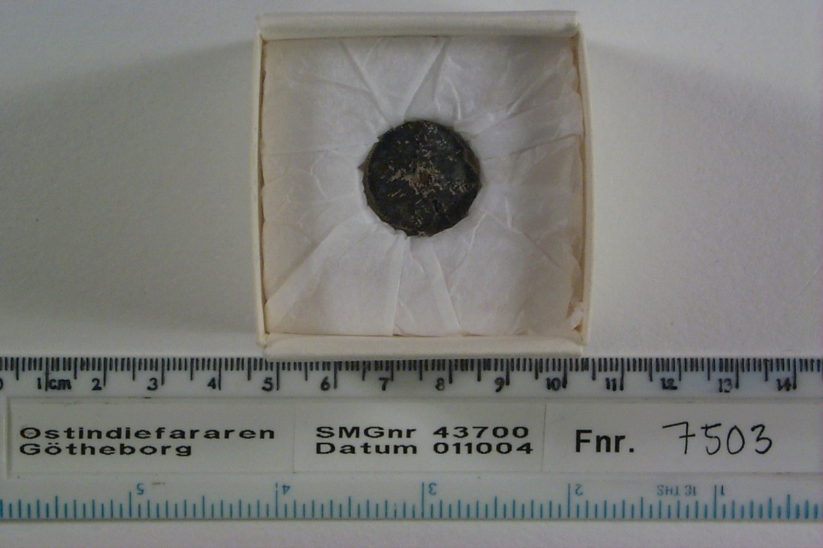 Föremålet är från vraket av ostindiefararen Götheborg, som gjorde tre resor till Kina 1739-45. Vid hemkomsten från den sista resan 12 september 1745 förliste fartyget vid grundet Hunnebådan strax utanför Nya Elfsborgs fästning. Vid flera tillfällen har material tagits upp från vraket. Föremålet kommer från de marinarkeologiska utgrävningarna på platsen 1986-1992.