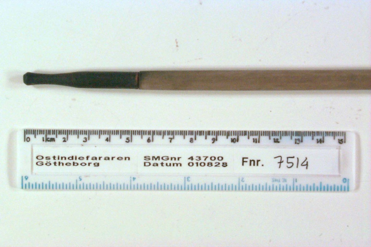 Föremålet är från vraket av ostindiefararen Götheborg, som gjorde tre resor till Kina 1739-45. Vid hemkomsten från den sista resan 12 september 1745 förliste fartyget vid grundet Hunnebådan strax utanför Nya Elfsborgs fästning. Vid flera tillfällen har material tagits upp från vraket. Föremålet kommer från de marinarkeologiska utgrävningarna på platsen 1986-1992.