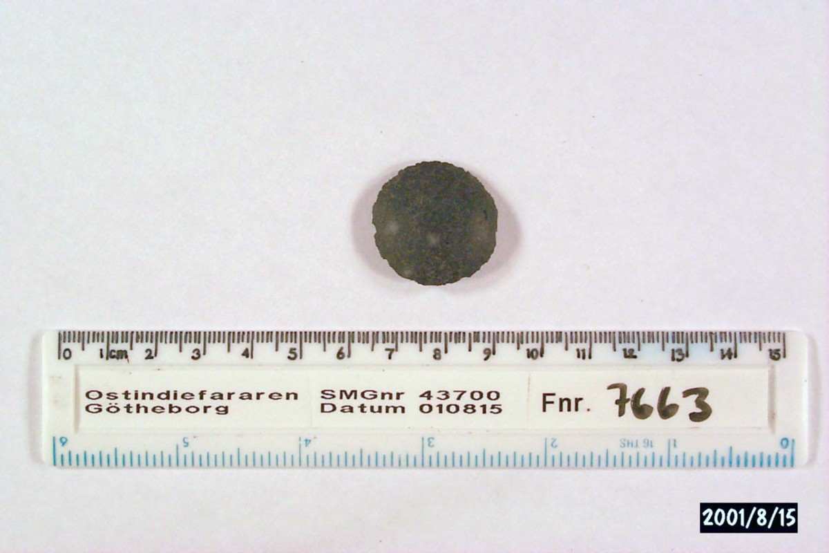 Föremålet är från vraket av ostindiefararen Götheborg, som gjorde tre resor till Kina 1739-45. Vid hemkomsten från den sista resan 12 september 1745 förliste fartyget vid grundet Hunnebådan strax utanför Nya Elfsborgs fästning. Vid flera tillfällen har material tagits upp från vraket. Föremålet kommer från de marinarkeologiska utgrävningarna på platsen 1986-1992.