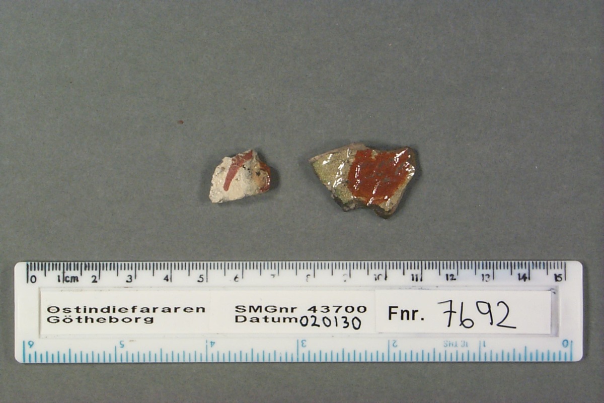 Föremålet är från vraket av ostindiefararen Götheborg, som gjorde tre resor till Kina 1739-45. Vid hemkomsten från den sista resan 12 september 1745 förliste fartyget vid grundet Hunnebådan strax utanför Nya Elfsborgs fästning. Vid flera tillfällen har material tagits upp från vraket. Föremålet kommer från de marinarkeologiska utgrävningarna på platsen 1986-1992.