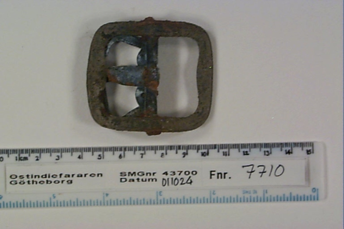 Föremålet är från vraket av ostindiefararen Götheborg, som gjorde tre resor till Kina 1739-45. Vid hemkomsten från den sista resan 12 september 1745 förliste fartyget vid grundet Hunnebådan strax utanför Nya Elfsborgs fästning. Vid flera tillfällen har material tagits upp från vraket. Föremålet kommer från de marinarkeologiska utgrävningarna på platsen 1986-1992.