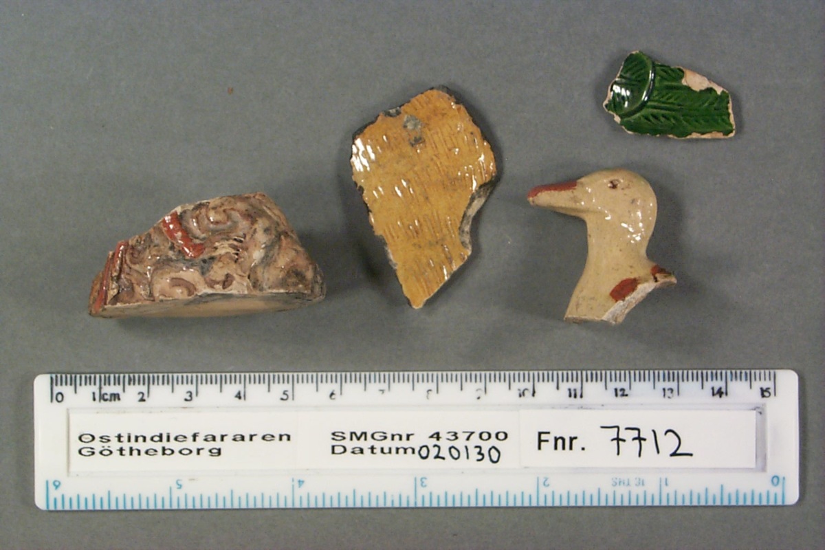 Föremålet är från vraket av ostindiefararen Götheborg, som gjorde tre resor till Kina 1739-45. Vid hemkomsten från den sista resan 12 september 1745 förliste fartyget vid grundet Hunnebådan strax utanför Nya Elfsborgs fästning. Vid flera tillfällen har material tagits upp från vraket. Föremålet kommer från de marinarkeologiska utgrävningarna på platsen 1986-1992.