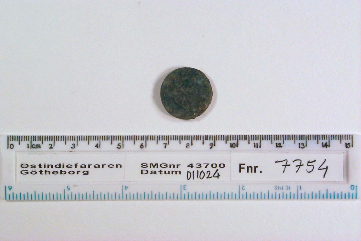 Föremålet är från vraket av ostindiefararen Götheborg, som gjorde tre resor till Kina 1739-45. Vid hemkomsten från den sista resan 12 september 1745 förliste fartyget vid grundet Hunnebådan strax utanför Nya Elfsborgs fästning. Vid flera tillfällen har material tagits upp från vraket. Föremålet kommer från de marinarkeologiska utgrävningarna på platsen 1986-1992.