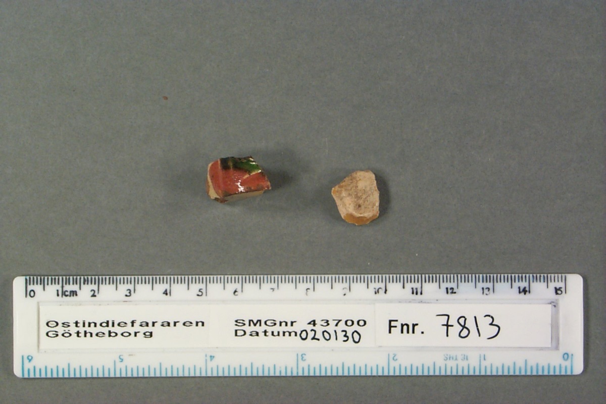 Föremålet är från vraket av ostindiefararen Götheborg, som gjorde tre resor till Kina 1739-45. Vid hemkomsten från den sista resan 12 september 1745 förliste fartyget vid grundet Hunnebådan strax utanför Nya Elfsborgs fästning. Vid flera tillfällen har material tagits upp från vraket. Föremålet kommer från de marinarkeologiska utgrävningarna på platsen 1986-1992.