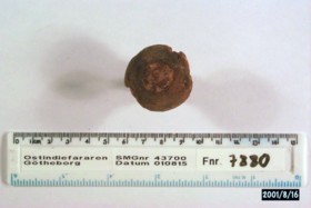 Föremålet är från vraket av ostindiefararen Götheborg, som gjorde tre resor till Kina 1739-45. Vid hemkomsten från den sista resan 12 september 1745 förliste fartyget vid grundet Hunnebådan strax utanför Nya Elfsborgs fästning. Vid flera tillfällen har material tagits upp från vraket. Föremålet kommer från de marinarkeologiska utgrävningarna på platsen 1986-1992.