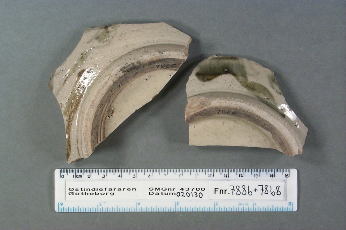 Föremålet är från vraket av ostindiefararen Götheborg, som gjorde tre resor till Kina 1739-45. Vid hemkomsten från den sista resan 12 september 1745 förliste fartyget vid grundet Hunnebådan strax utanför Nya Elfsborgs fästning. Vid flera tillfällen har material tagits upp från vraket. Föremålet kommer från de marinarkeologiska utgrävningarna på platsen 1986-1992.