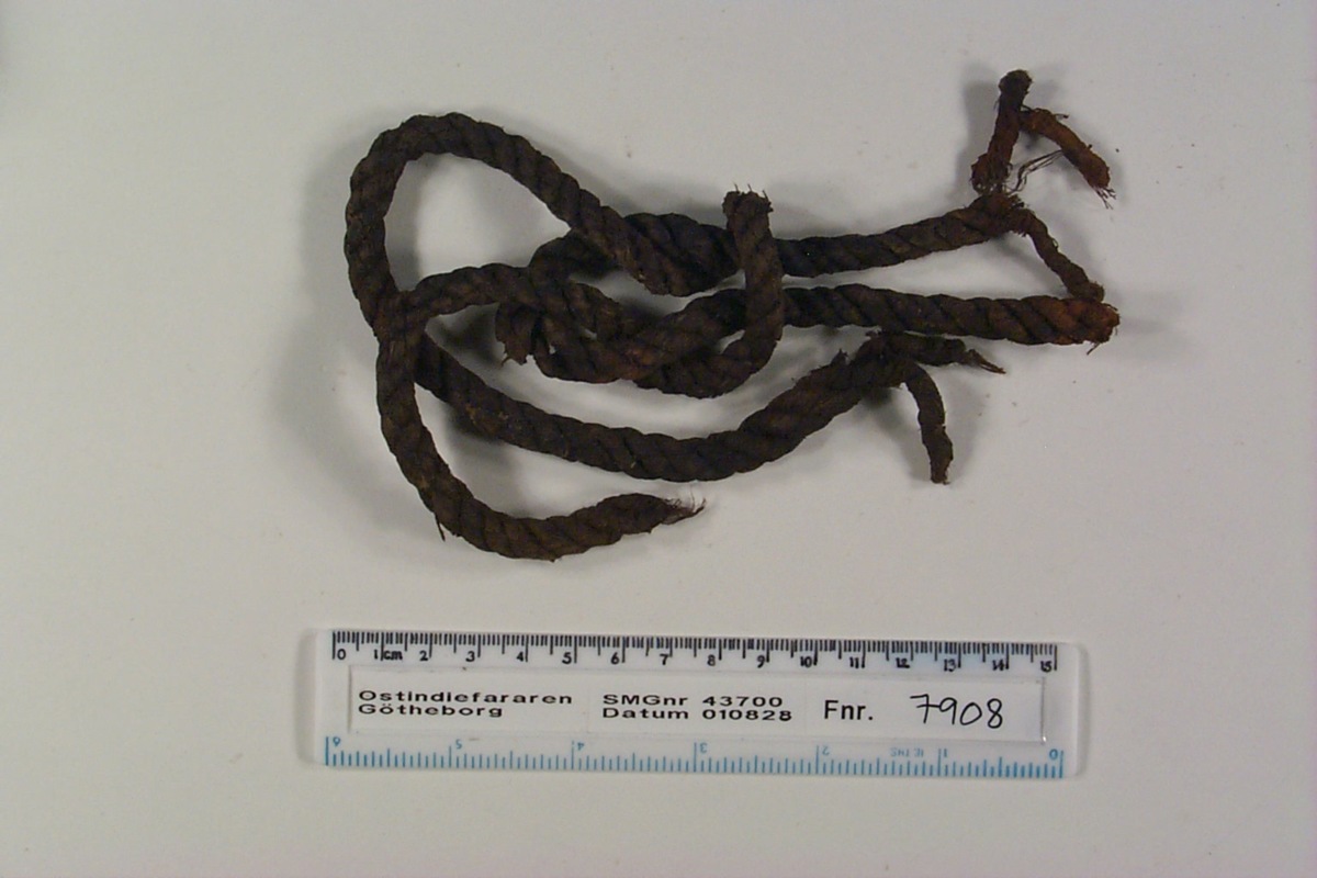 Föremålet är från vraket av ostindiefararen Götheborg, som gjorde tre resor till Kina 1739-45. Vid hemkomsten från den sista resan 12 september 1745 förliste fartyget vid grundet Hunnebådan strax utanför Nya Elfsborgs fästning. Vid flera tillfällen har material tagits upp från vraket. Föremålet kommer från de marinarkeologiska utgrävningarna på platsen 1986-1992.