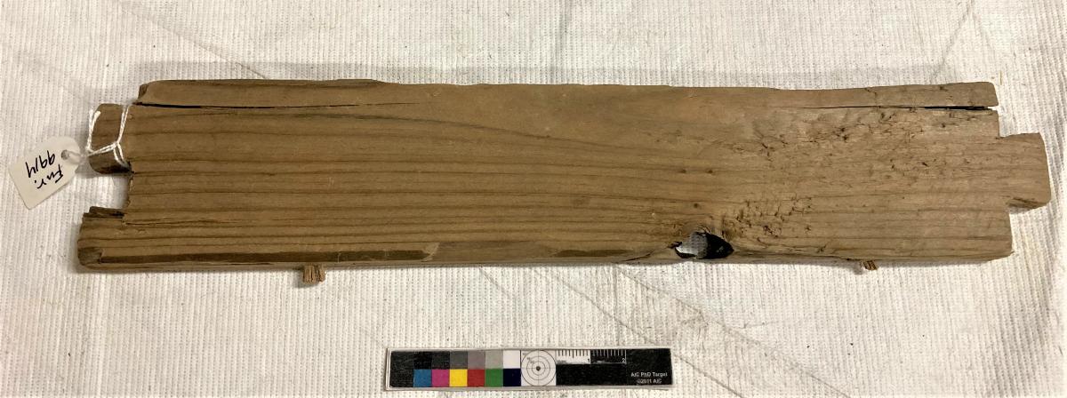 Föremålet är från vraket av ostindiefararen Götheborg, som gjorde tre resor till Kina 1739-45. Vid hemkomsten från den sista resan 12 september 1745 förliste fartyget vid grundet Hunnebådan strax utanför Nya Elfsborgs fästning. Vid flera tillfällen har material tagits upp från vraket. Föremålet kommer från de marinarkeologiska utgrävningarna på platsen 1986-1992.