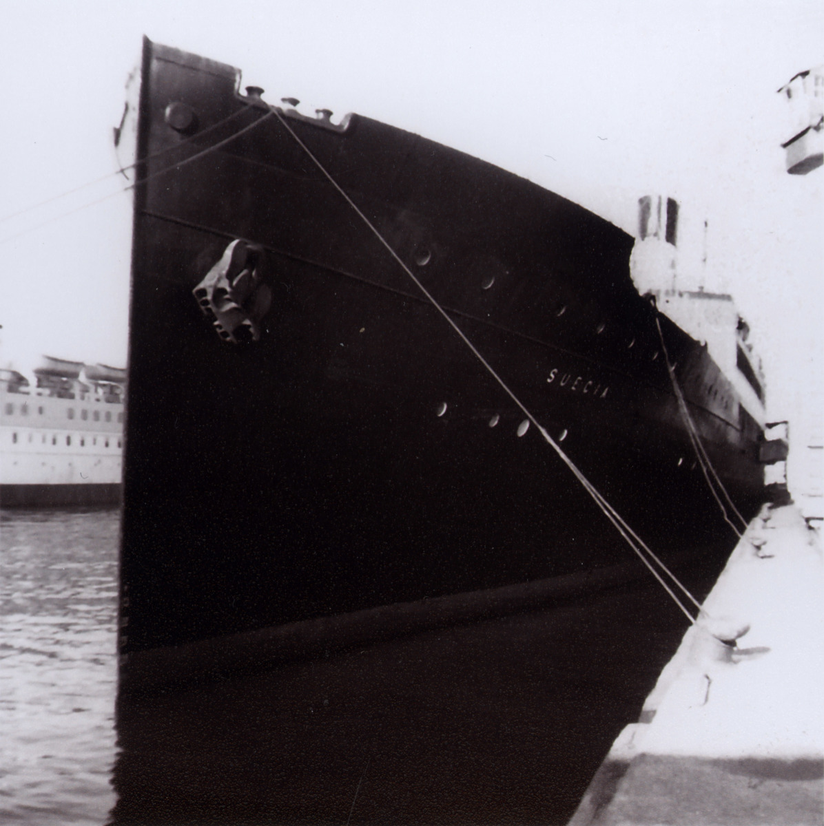 Föreställer SUECIA vid kajen i Göteborg, snart redo att åka mot Tilbury i England.