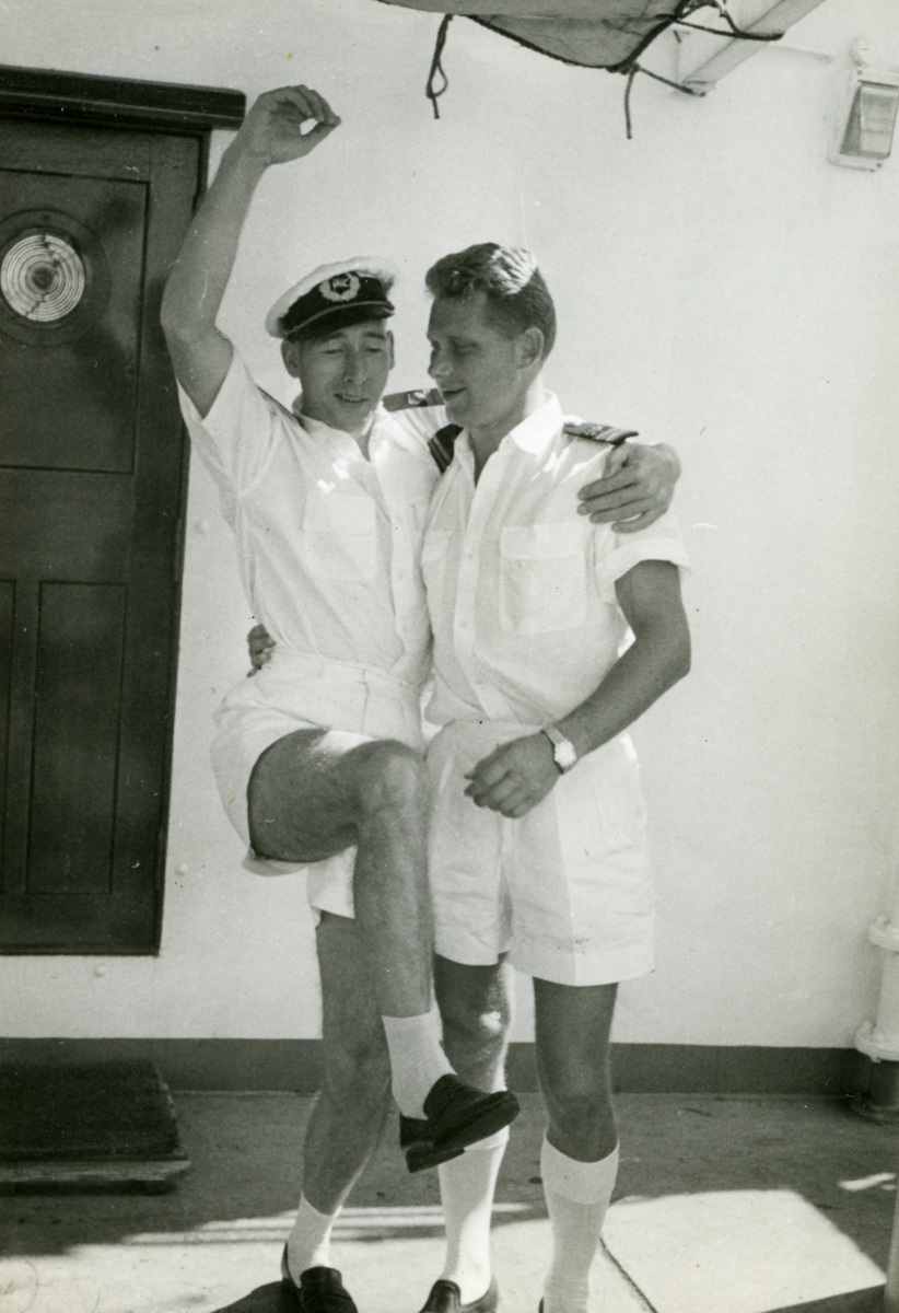 Beng Ohm och telegrafisten Mauritzon ute på däck, ombord på STAR BELLATRIX omkring 1961-1962.