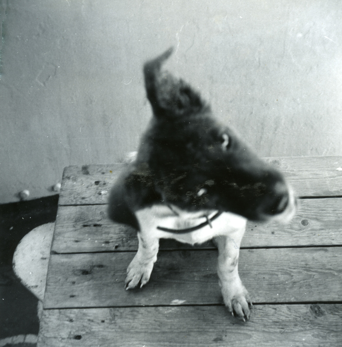 Föreställer hunden Maggie ombord ELISABETH. Valpen hittades i rännstenen i Singapore och togs om hand av besättningen ombord.