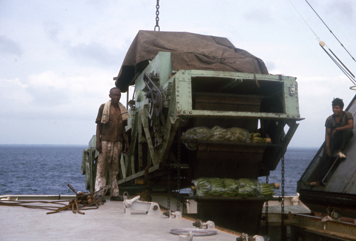 Lastning av bananer i Turbo, Colombia, i mars 1966, ombord kylfartyget CRYSTAL SEA. Nils Andersson arbetade ombord CRYSTAL SEA 1964-1968.