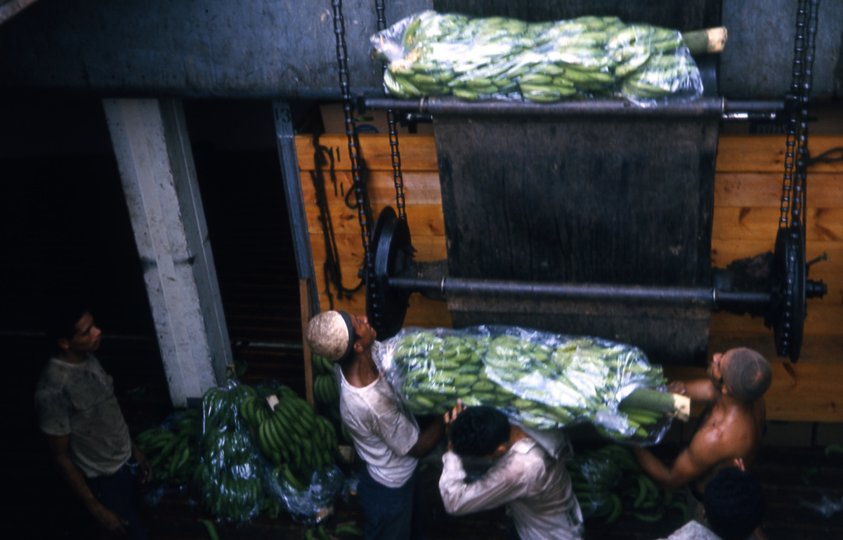 Lastning av bananer i Turbo, Colombia, i mars 1966, ombord kylfartyget CRYSTAL SEA. Nils Andersson arbetade ombord CRYSTAL SEA 1964-1968.