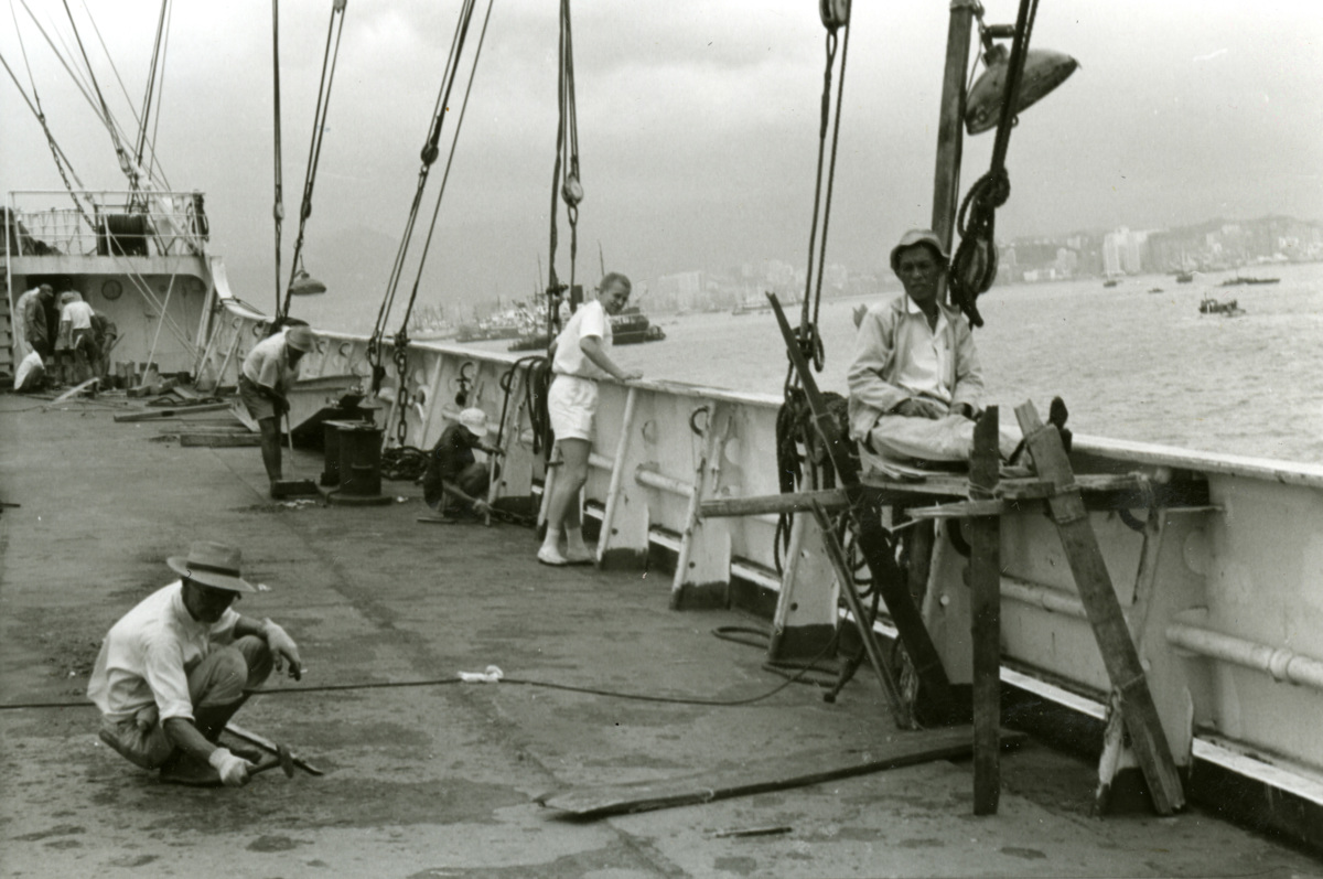 Arbete ombord däck på motorlastfartyget JAPAN år 1964