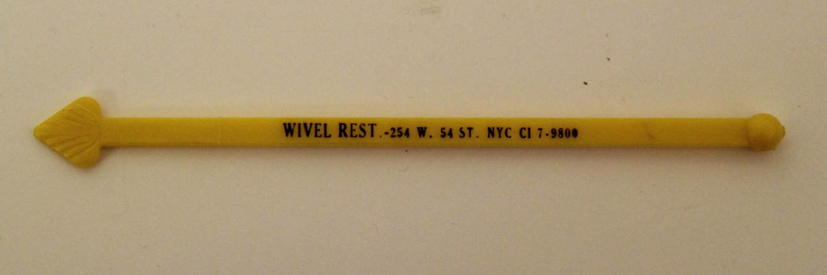 Påskrift: Wivel Rest -254 W. 54 ST. NYC CI 7-9800, ovansidan