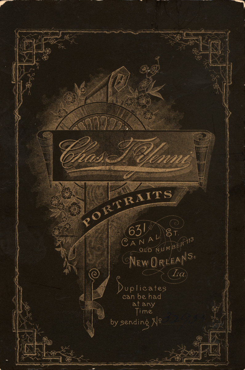 Tryck: Chas. T. Yenni Portraits. 632 Canal St. New Orleans. old number 113. Duplicates can be had at any time by sending no 32933