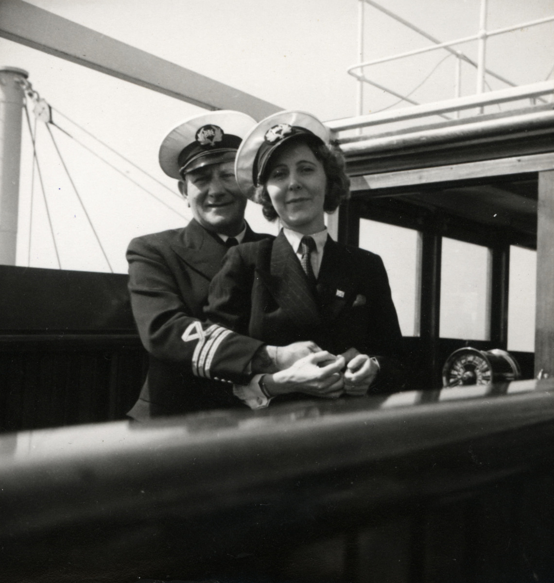 Sjökapten Oscar Huldtgren och hans hustru Grethe Huldtgren på däck