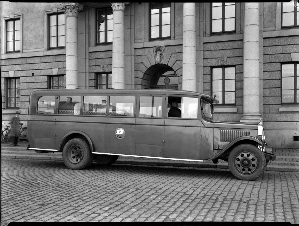 Bil tillhörande SAL. Användes för transport av passagerare (sannolikt endast 1a klass passagerare) till Amerikaskjulet därifrån SALs fartyg avgick. Bilen syns här utanför hotell Göta Källare som SAL inköpt 1921. Hotellet låg vid Hotellplatsen vid Kvarnbron (när dagens Nordstan, korsningen Södra Hamngatan/Östra Larmgatan) och var i SALs ägo fram till 31 juli 1944.