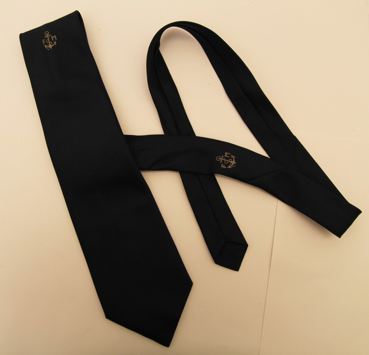 Gå tillbaka till sökPublic DomainLägg till i Min samlingKopiera länkSkriv utSlipsAktörerKarl Ossian Emil Persson (1921 - 2014), Brukare Ann Persson, Förvärvat från Kamratföreningen Flottans Män (FM) (*1935), Tillverkare Olette Persson, Förvärvat från Sporrong & Co (*1666), TillverkareKategorislips (Kläder)Material och tekniktextilDimensionerLängd 139,00 cm Bredd 10,50 cmInventarienummerSMG45052UtställdInte utställd på museetBeskrivningMörkblå slips med invävt mönster i silvertråd föreställande ett ankare och bokstäverna FM.