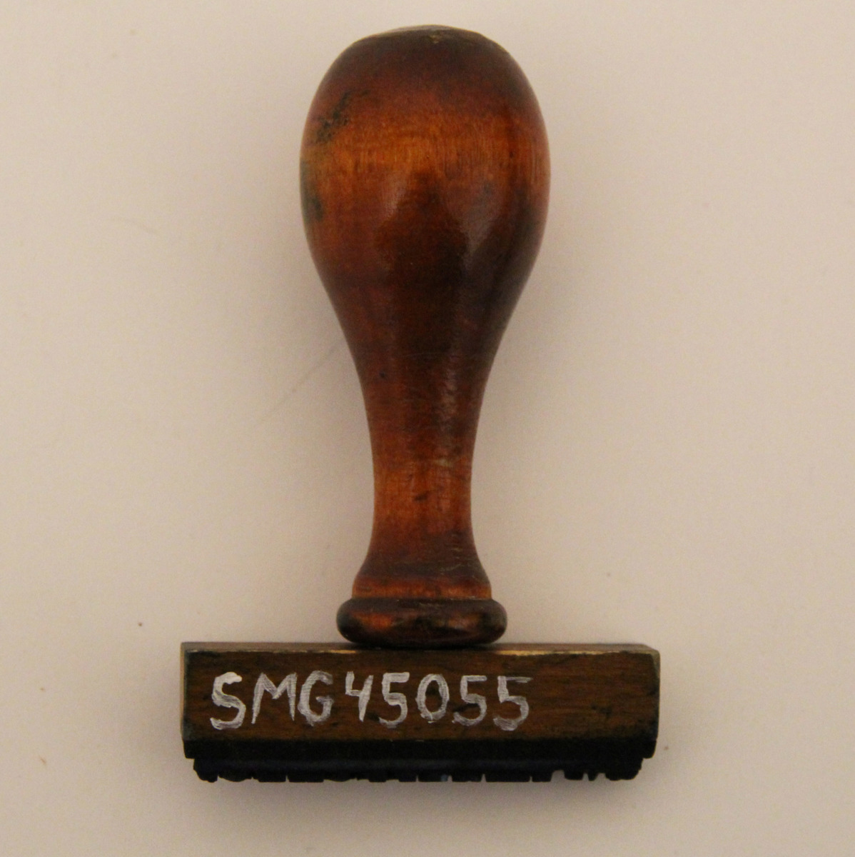 Stämpel med träskaft och gummidyna.