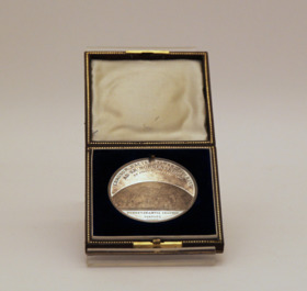 Medalj i ask, utdelad av KVVS i juli 1880 till Eric Cornelis Brusewitz för dennes insats som sekond under Nordenskiölds VEGA-expedition 1878-1879. Medaljen är av silver och försvaras nedsänkt i en brun ask som är klädd med blå sammet och beigt siden. På medaljens ovansida finns norra halvklotet avbildat samt text i relief. På undersidan finns text i relief samt en stjärnkonstellation och ett ankare omgivet av fanor.