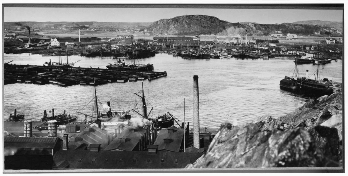 Fotografiet är taget från Stora Otterhällan. På bilden syns Götaverken på Hisingssidan och i förgrunden varvets gamla läge, där Keillers verkstad ursprungligen låg.